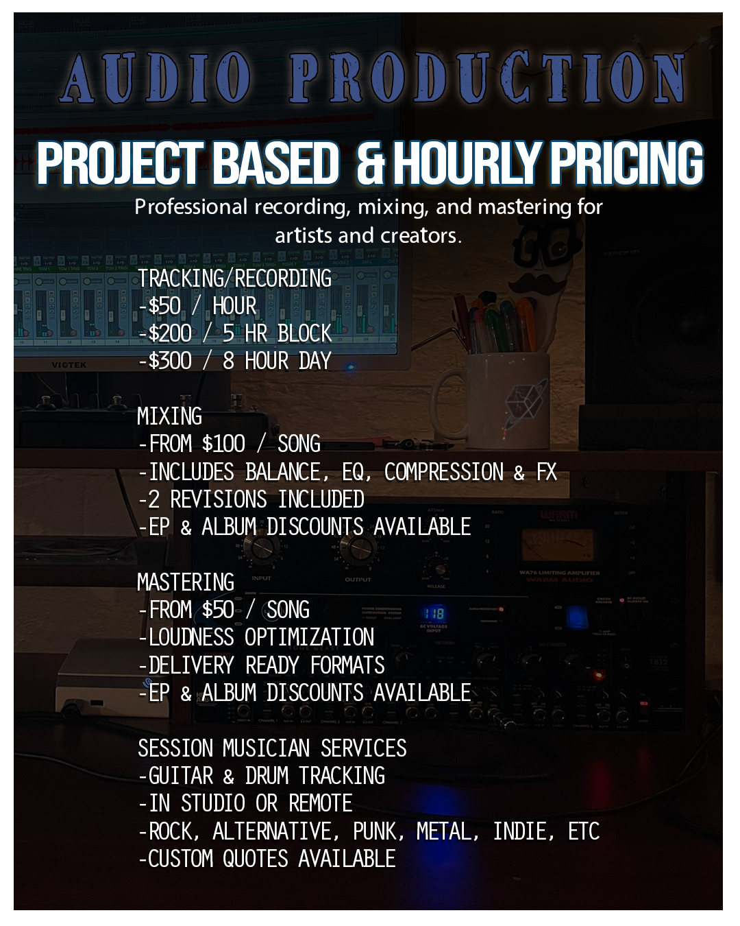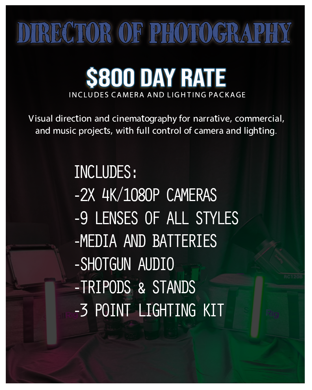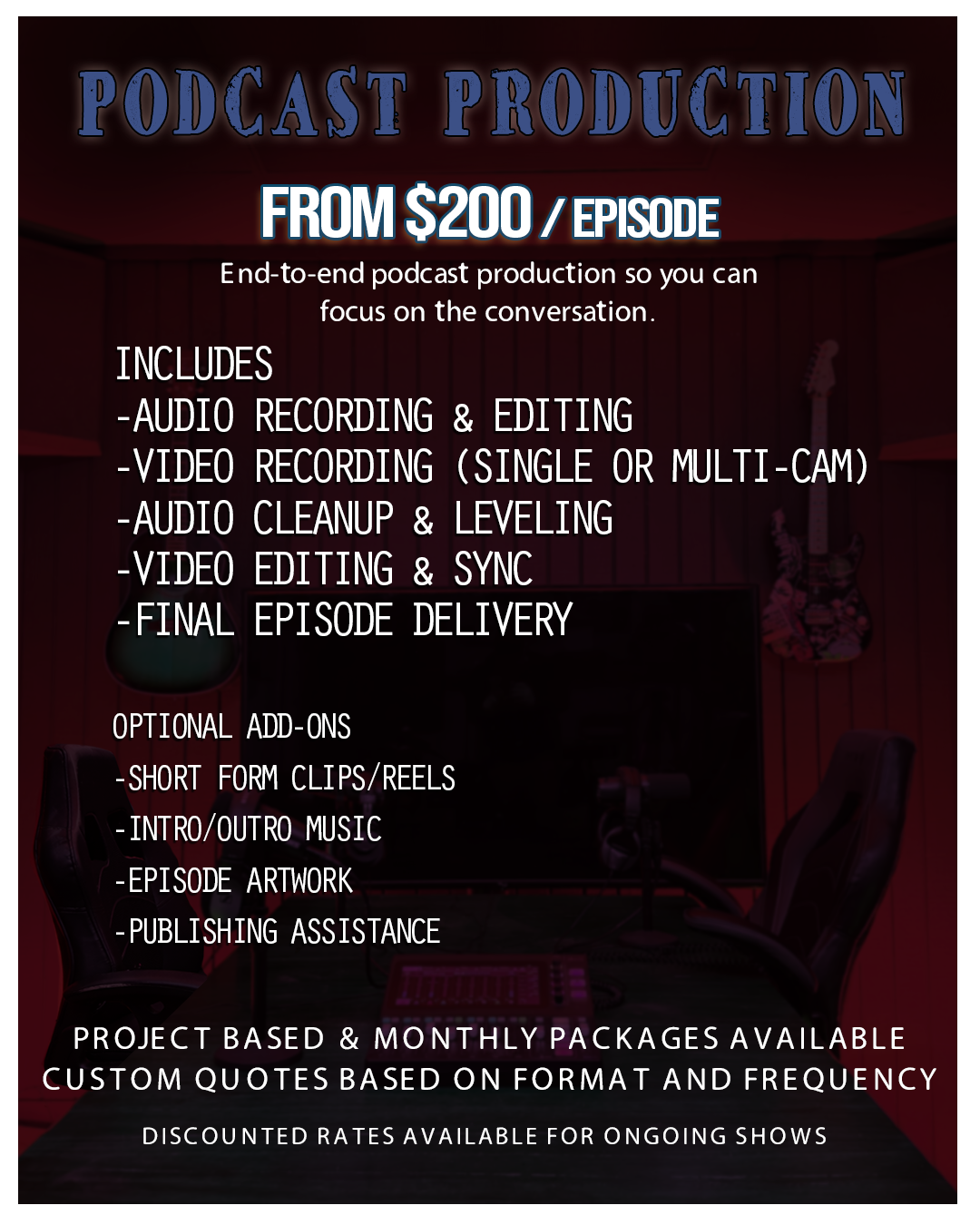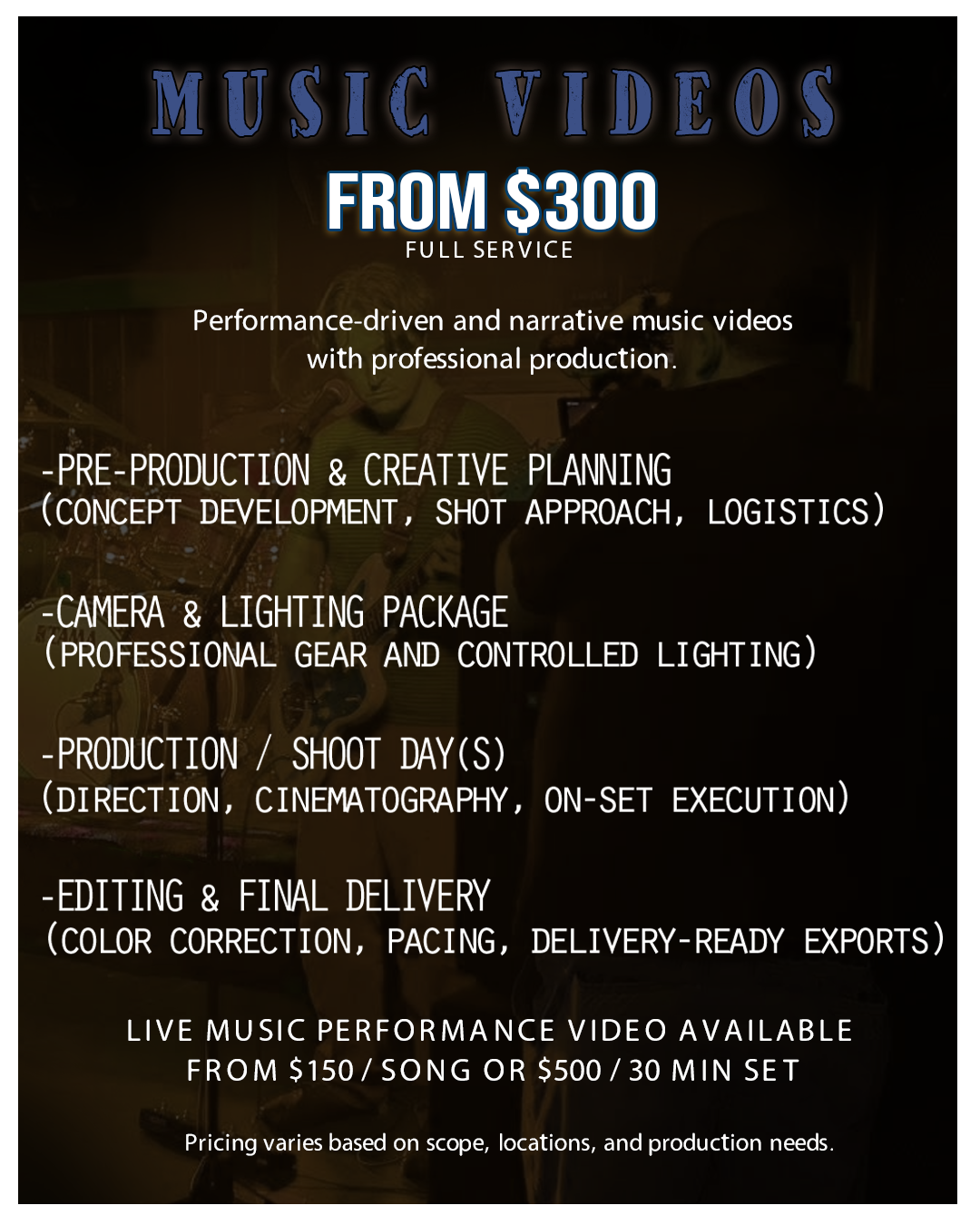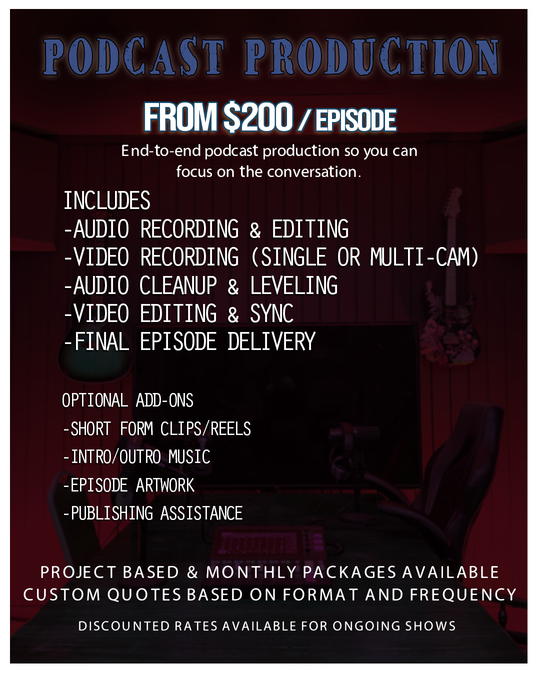 Saturn Storm Media offers full-service video, audio, graphics, and post-production for artists, creators, and brands. Whether you need complete production or a single role filled, services are designed to scale with your project.